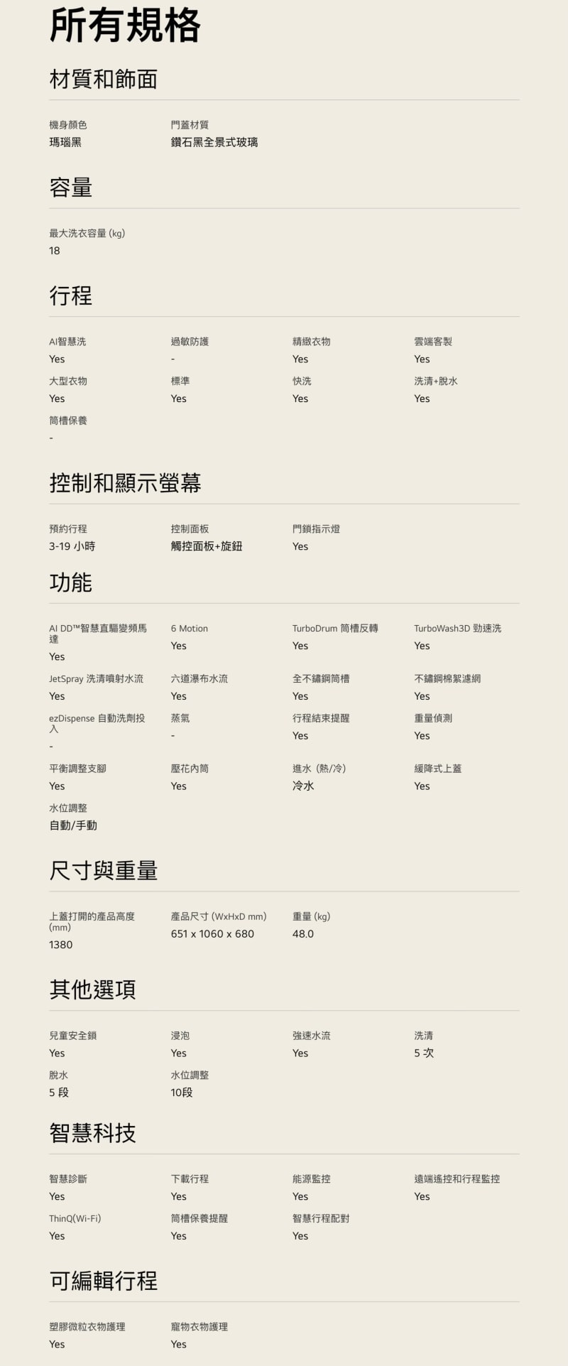 容量 : 洗衣18公斤