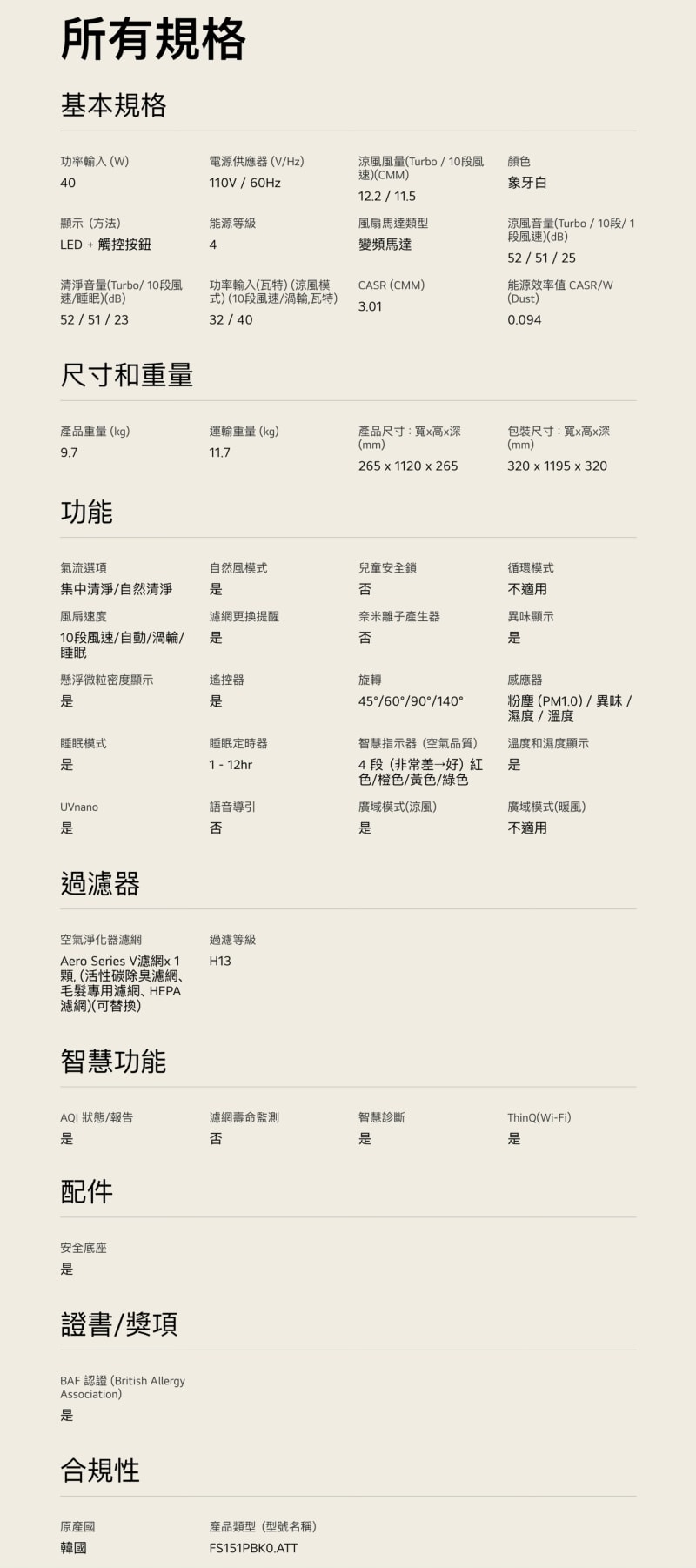 ►智慧感應系統:搭配LCD指示燈,可偵測至PM1.0的超細粉塵,顯示異味、溫度、溼度等室內空氣品質狀態