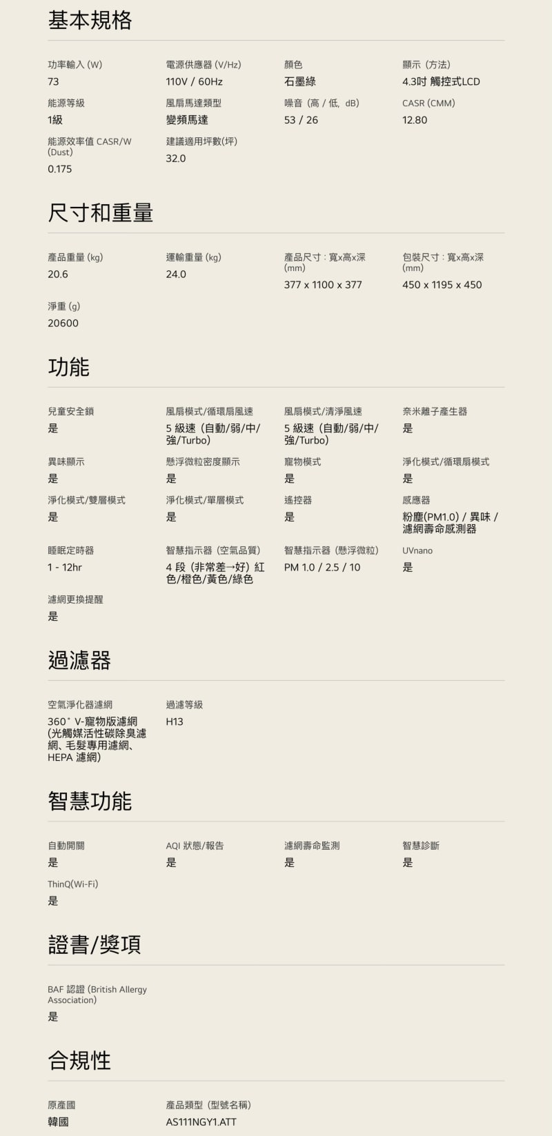 ►內建PM1.0懸浮微粒感應器、異味感應器、濾網壽命感測器