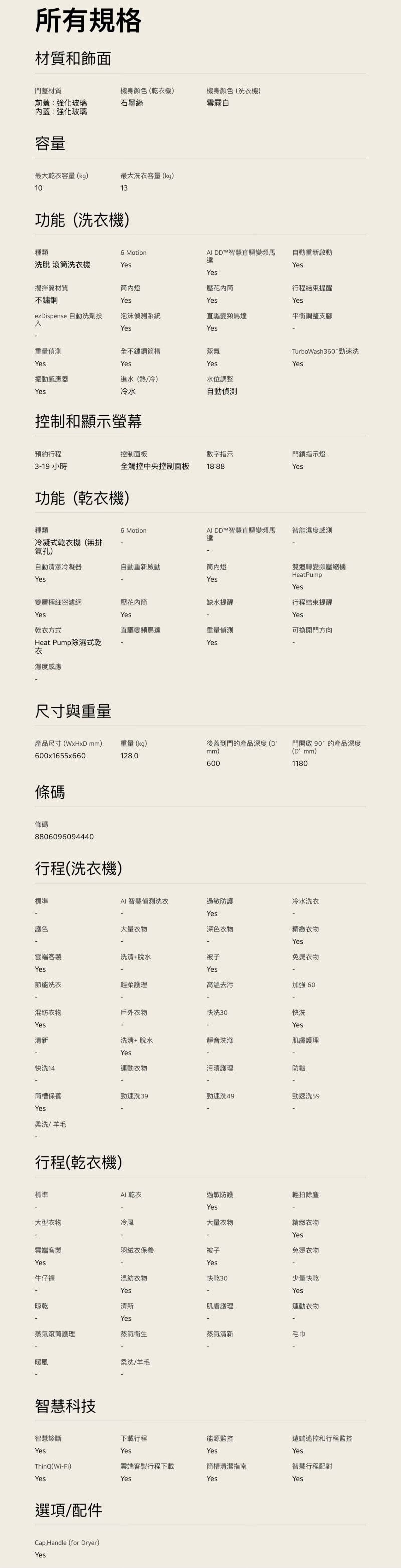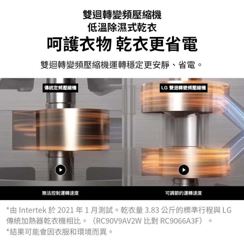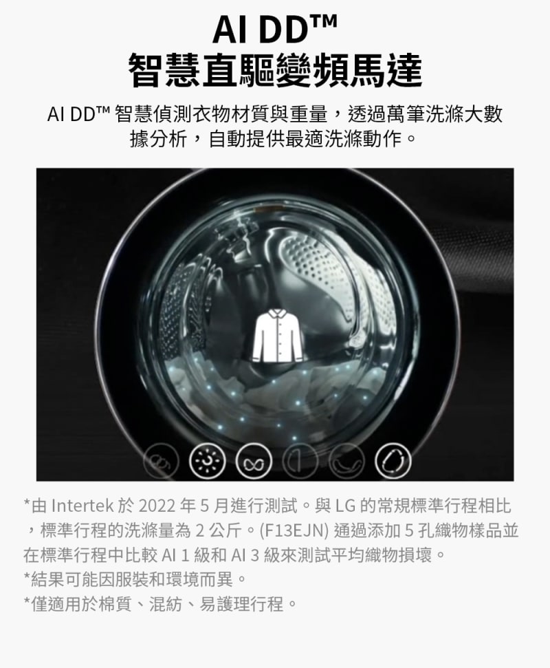 ►洗衣機:AI DD ™直驅變頻馬達/乾衣機:雙迴轉變頻壓縮機、變頻馬達 皆10年保固