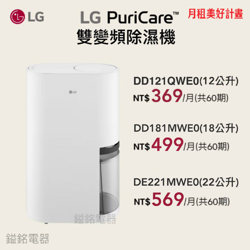 鎰銘電器-LG 家電租賃 PuriCare雙變頻除溼機 12公升-DD121QWE0