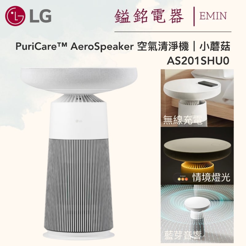 鎰銘電器-LG PuriCare™ AeroSpeaker 空氣清淨機|小蘑菇 AS201SHU0