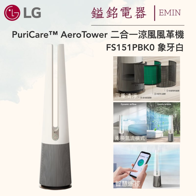 鎰銘電器-LG PuriCare AeroTower 二合一涼風風革機-FS151PBK0(象牙白)