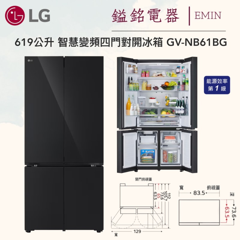 鎰銘電器-LG 智慧變頻四門對開冰箱 GV-NB61BG / 619公升