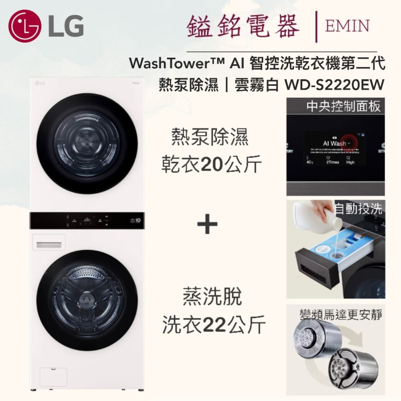 鎰銘電器-LG WashTower™ AI 智控洗乾衣機第二代 熱泵除濕 WD-S2220EW (雲霧白)