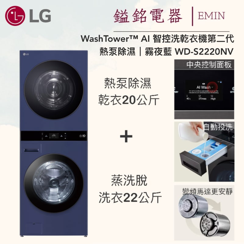 鎰銘電器-LG WashTower™ AI 智控洗乾衣機第二代 熱泵除濕 WD-S2220NV (霧夜藍)