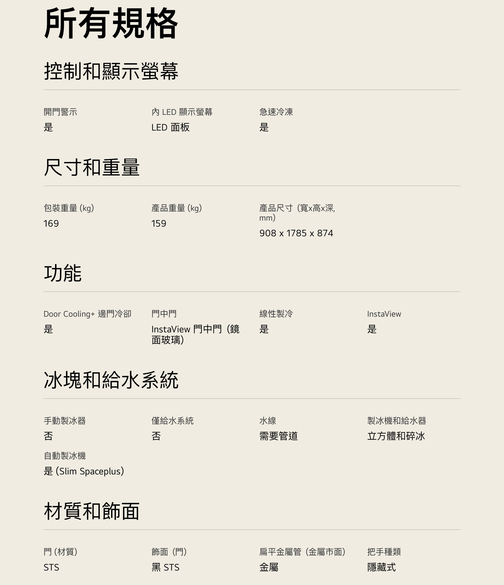 尺寸(寬x高x深 ):908 x 1785 x 874 mm