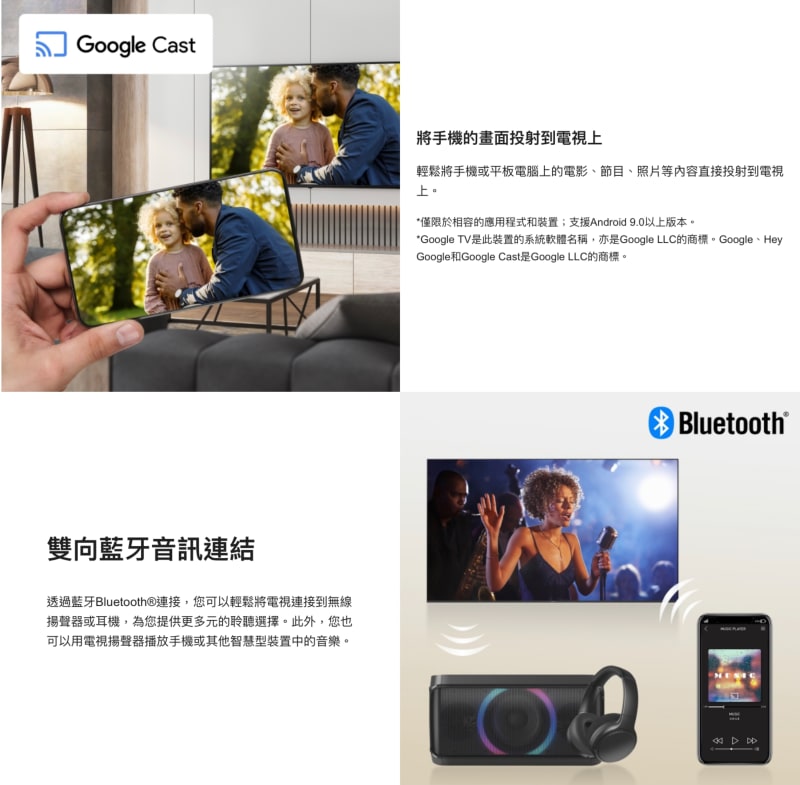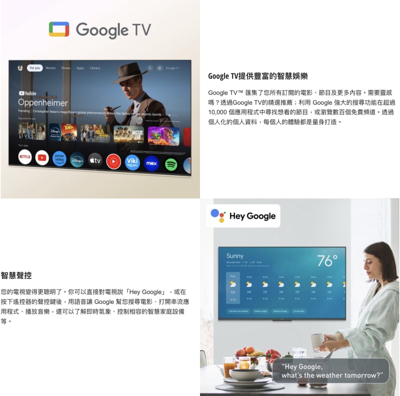 ►智慧功能:內建Hey Google語音助理、IOT智慧家電